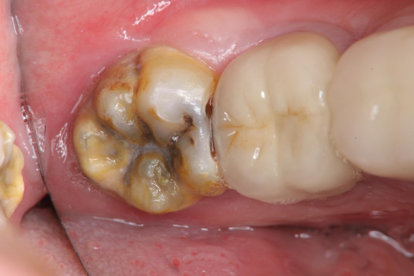 治療前,左下阻生齒深度蛀牙