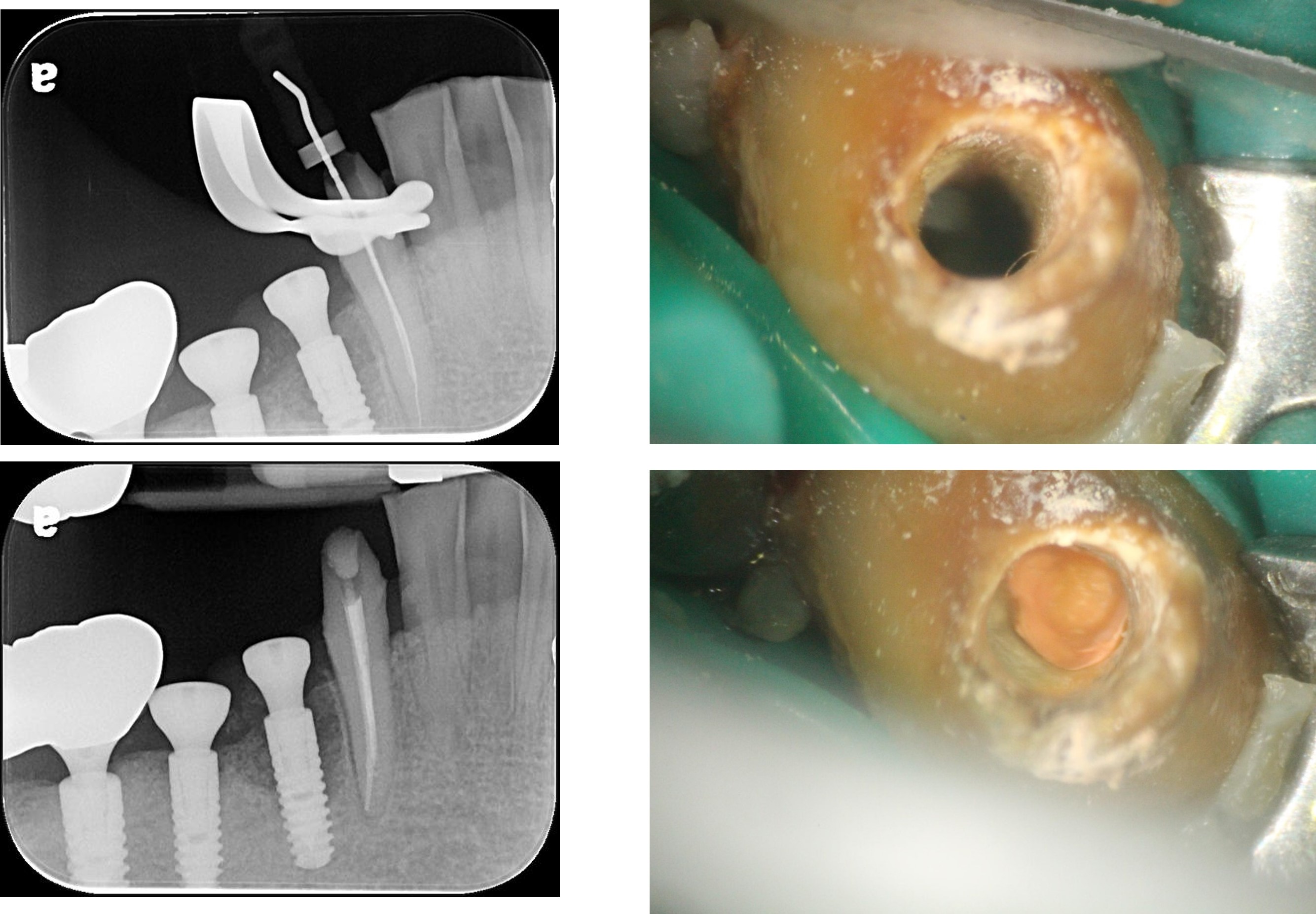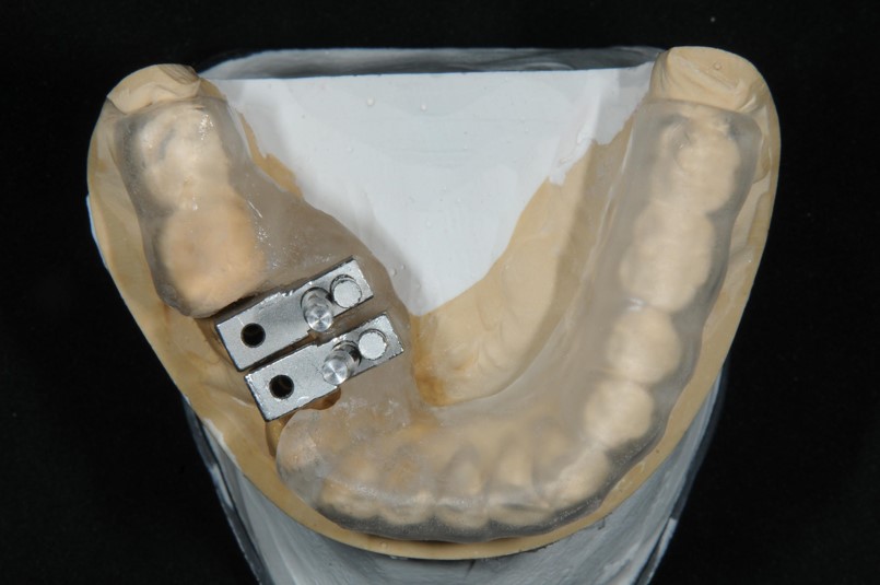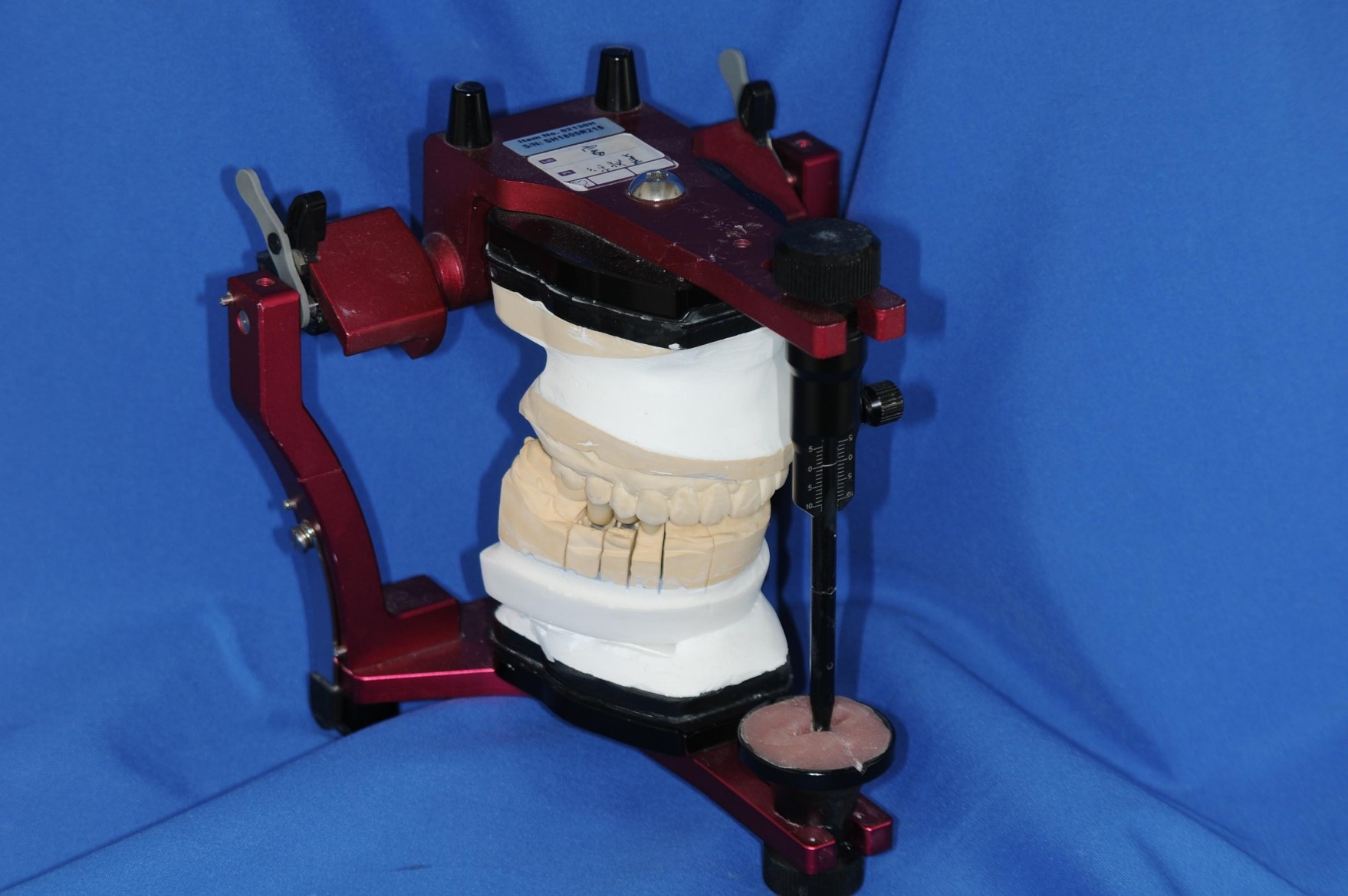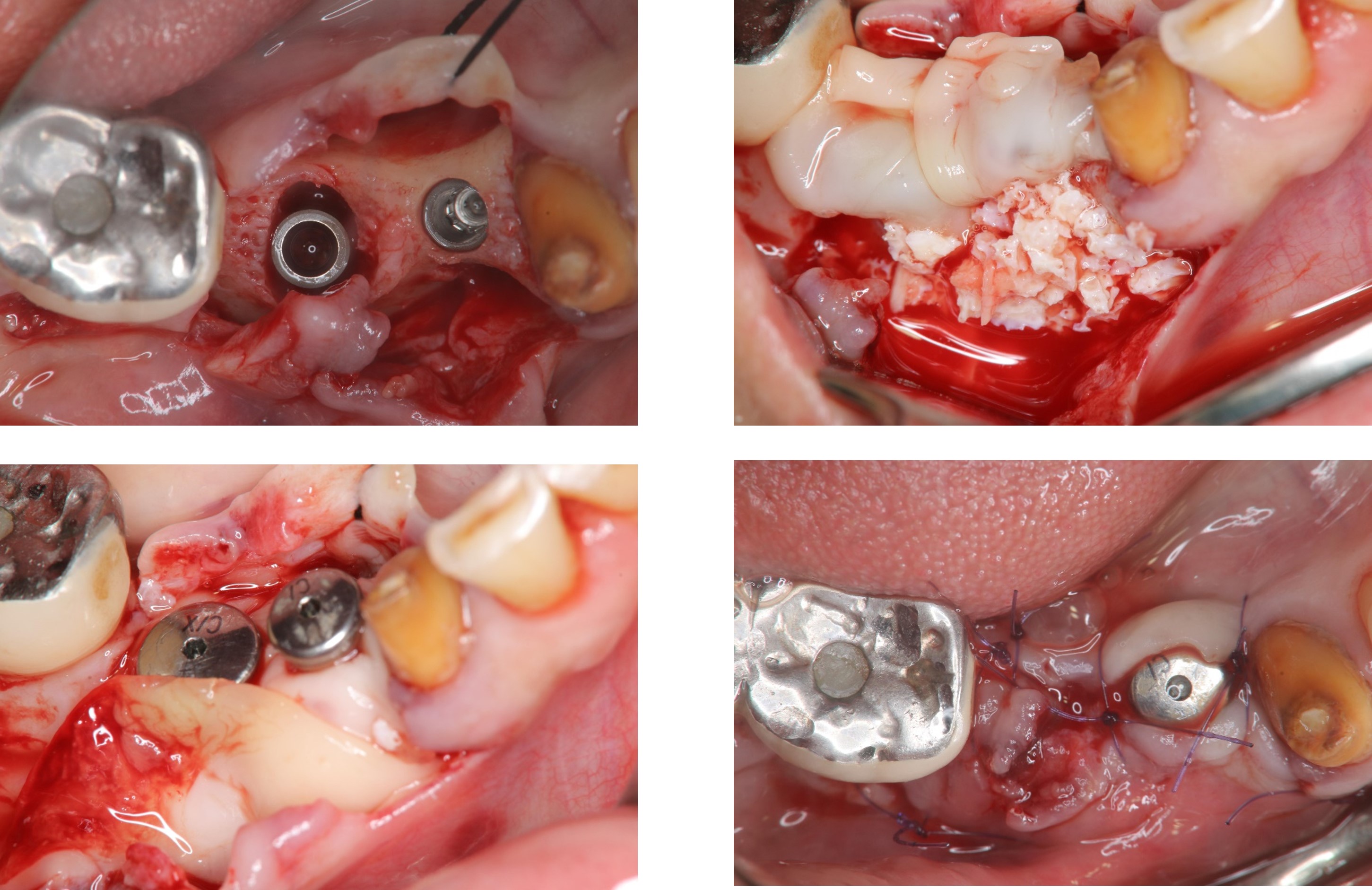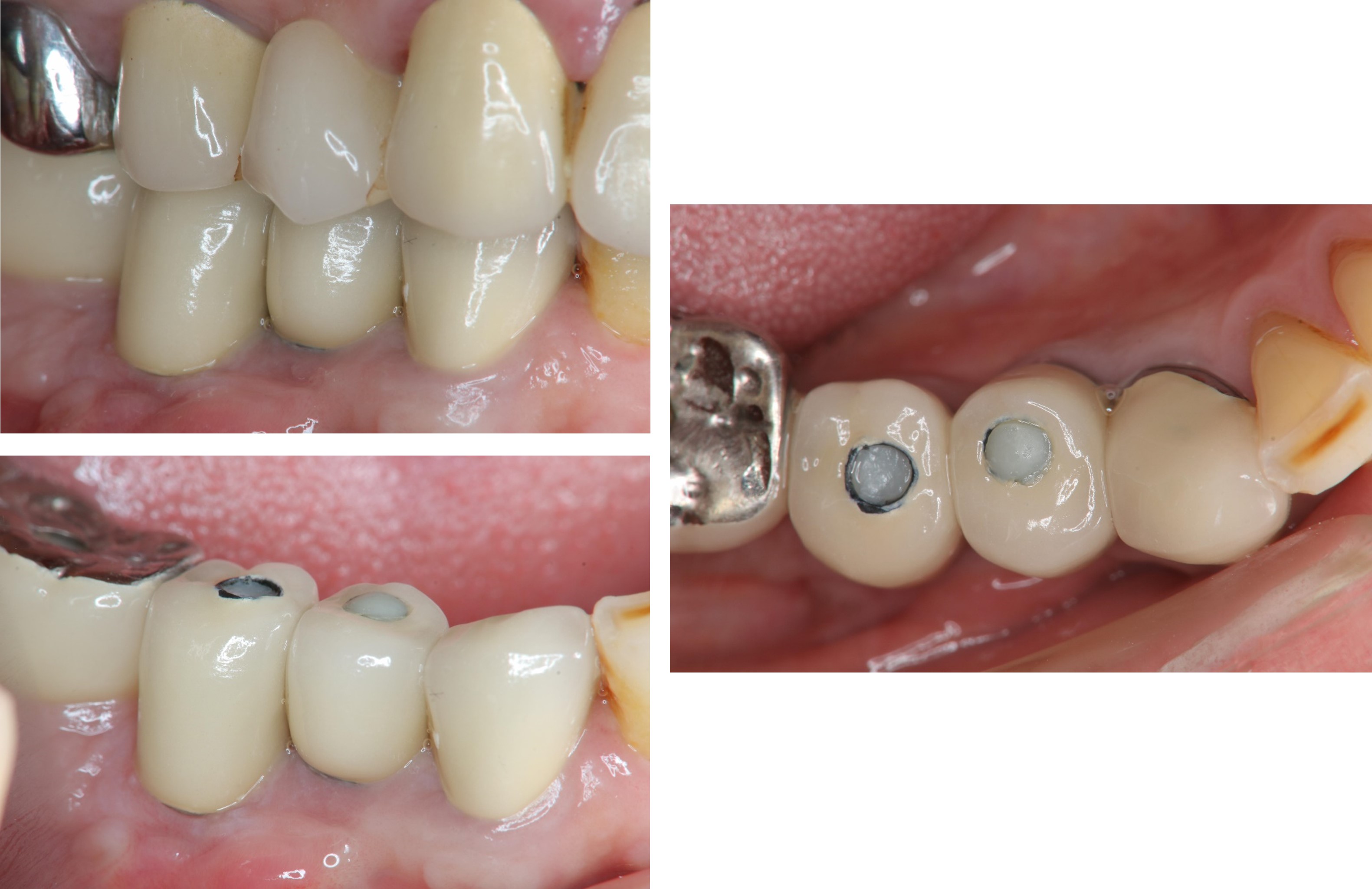 患者因不密合假牙,合併牙周破壞,無法保留牙齒,因費用考量,採植牙牙橋與金屬燒付瓷牙
