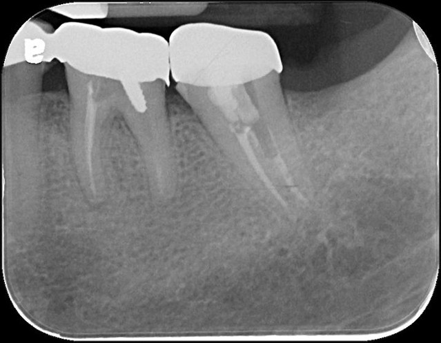 治療前,左下第二大臼齒根管鈣化