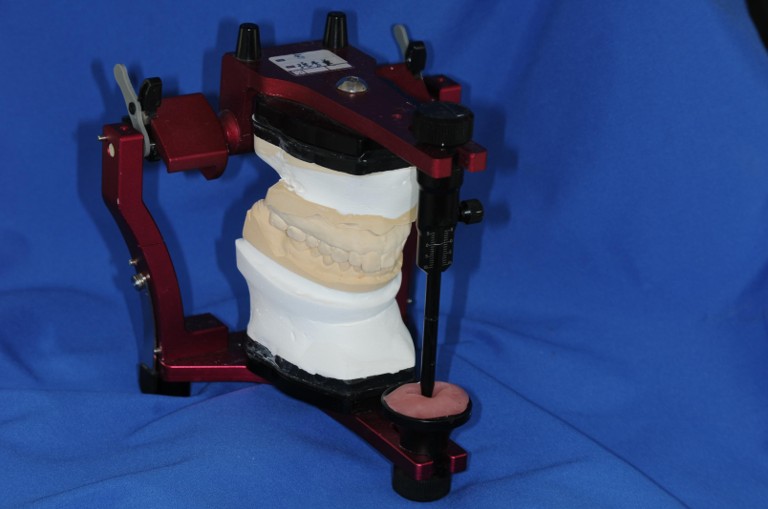技師於咬合器製作全瓷冠