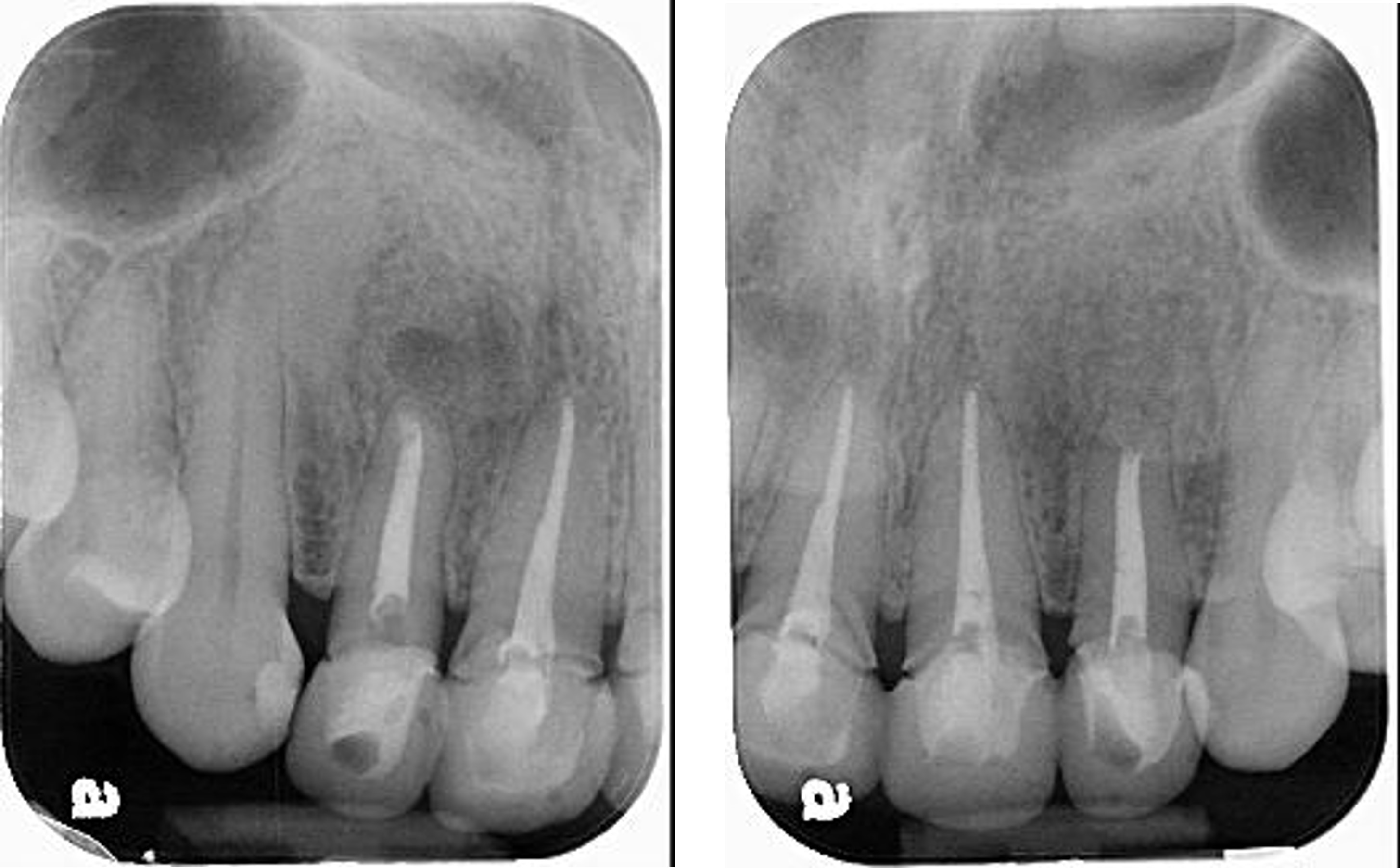 治療前,前牙根管治療不完全