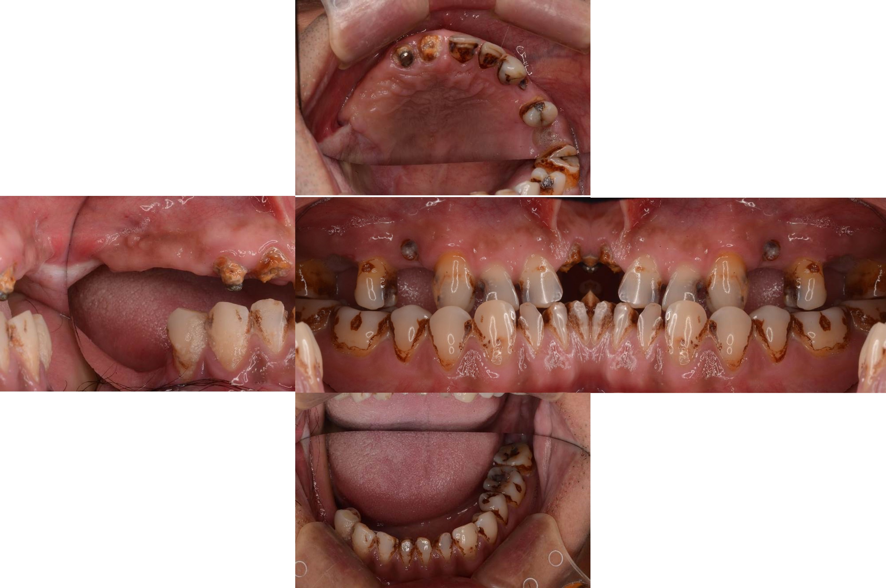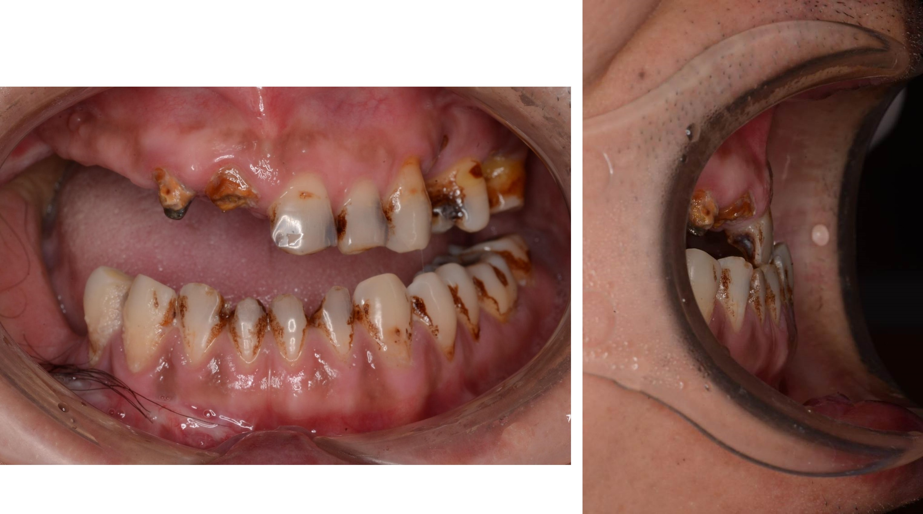 治療前,殘根與牙周支撐不良