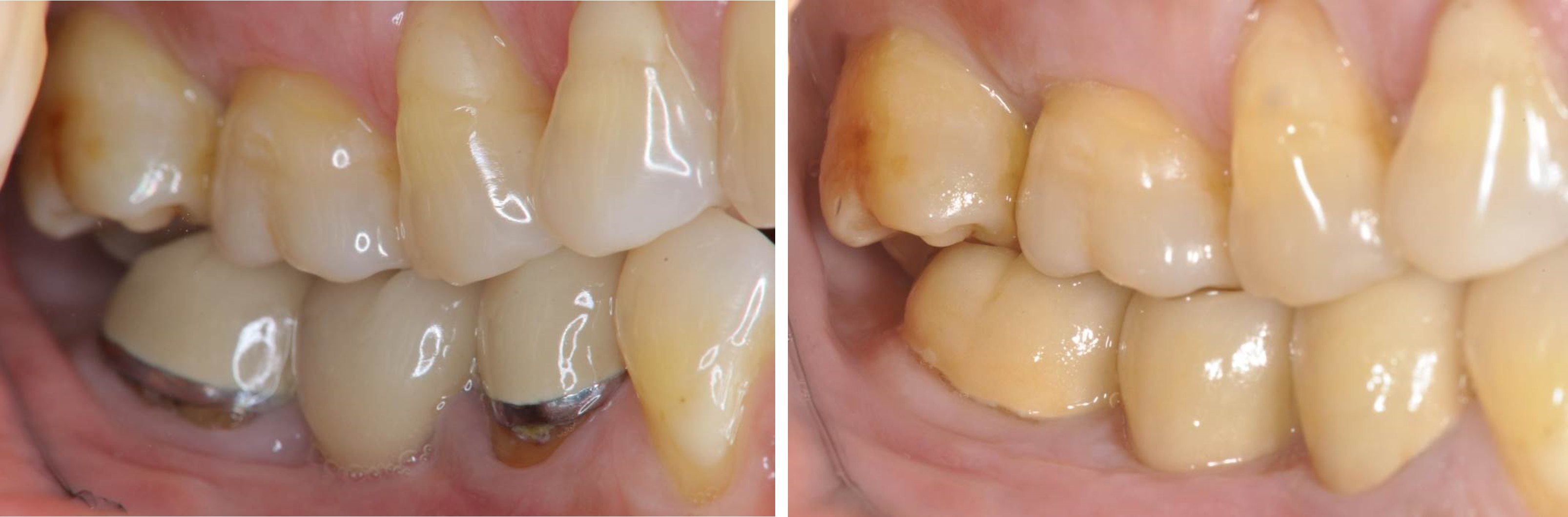 透剮牙脊增厚,再重做新的全瓷牙橋,假牙外形更美觀,也更容易清潔。