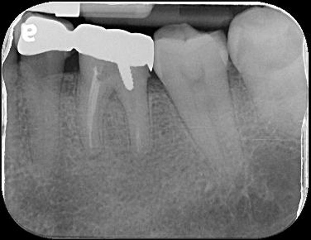 治療前,左下第二大臼齒根管鈣化