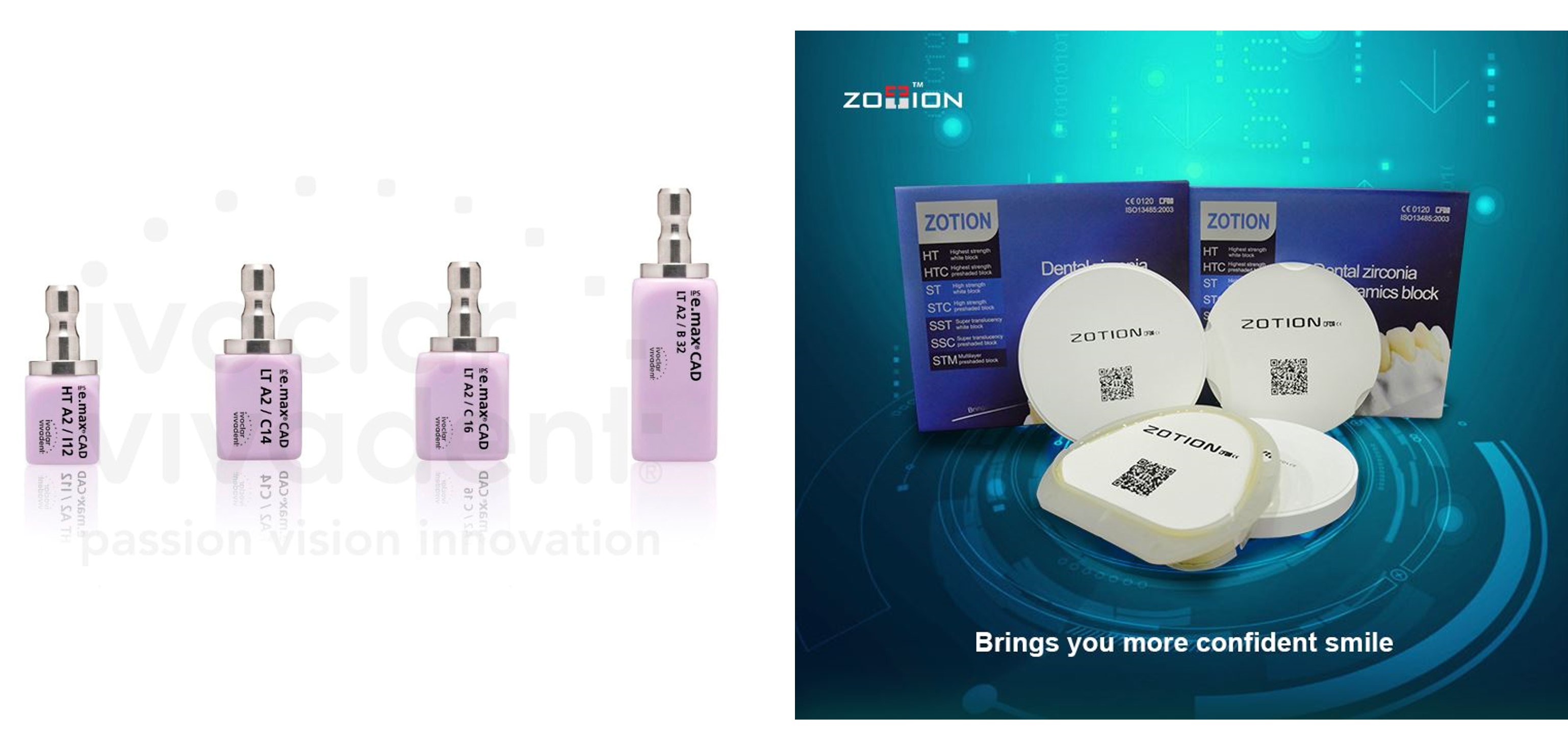 全瓷材料有玻璃陶瓷與二氧化鋯等兩種